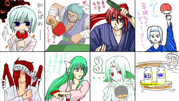 最初は思い思いに描いていたのですが、途中ひょんなことなら温泉卓球バトルに突入!